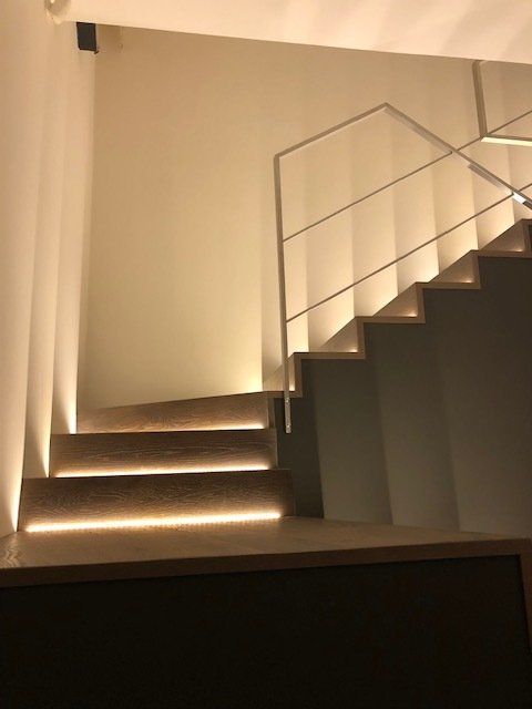 Particolare di scala interna con finiture di pregio e gioco di luci